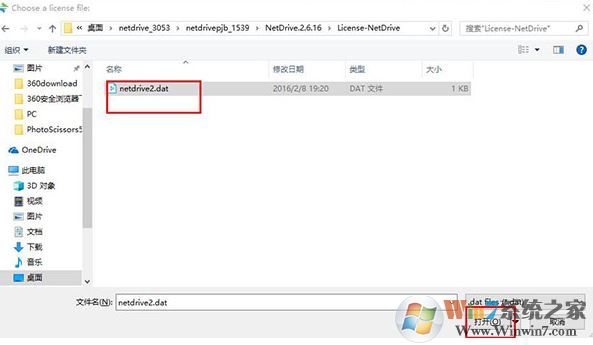 接着打开软件包中的“License”目录,选择“netdrive2.dat”许可证,点击打开导入许可证搞定!