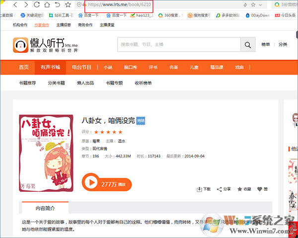 1、在懒人听书官网中,找到需要下载的小说资源;