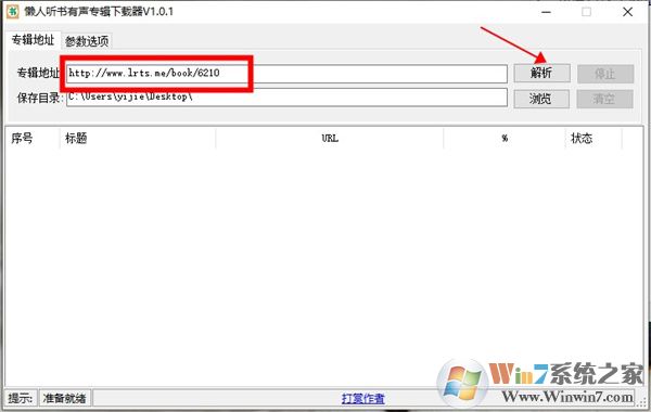 2、然后将这个书本的链接复制到人听书有声专辑下载器中的专辑地址中,点击解析;