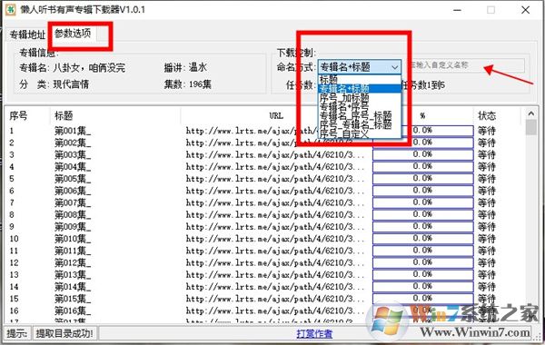 4、点击参数选项,然后这里可以进行一系列的设置,比如设置任务数量,设置命名方式;