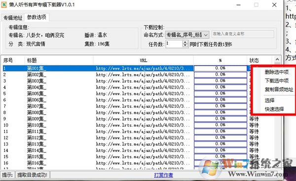懒人听书有声专辑下载器是一款十分好用的音频小说下载工具,软件完全免费不收取任何费用,可以帮助用户从有声小说网上免费下载全部的有声章节小说,还可以自定义自己的下载地址,里面有多种选项都是支持自定义的,可根据需求自由设置,方便用户在离线的状态下也可以轻松的读取小说。