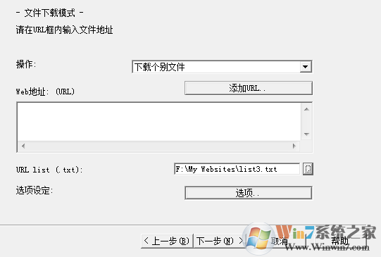 3、我们要下载若干个帖子,所以操作选择下载个别文件,web地址可以逐个输入,也可以用list列表,列表以回车键分开,对于有规律的帖子,可以在excel中拖动快速形成。