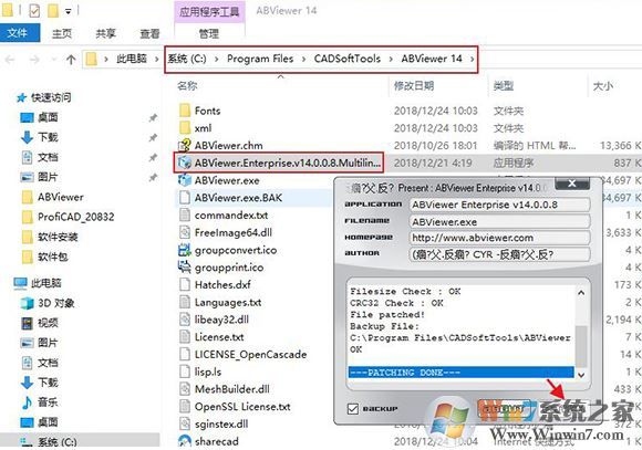 待软件安装完成后,我们可以将注册机ABViewer.Enterprise.v14.0.0.8.Multilingual.x64-Patch.exe复制到安装目录下并运行,点击“patch”,一般默认路径为:C:\Program Files\CADSoftTools\ABViewer 14