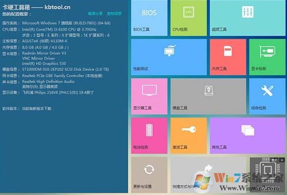 卡硬工具箱(多功能硬件检测工具)V2.9绿色版功能测试: