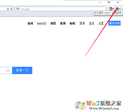 1、双击打开Safari浏览器,在打开的Safari浏览器里直接点击右上角的齿轮状【设置】图标,如下图所示。