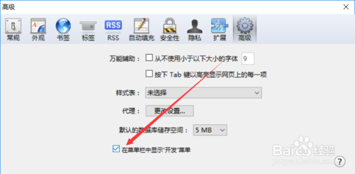 4、在Safari高级选项卡里将【在菜单栏中显示开发菜单】给勾选上,如下图所示。