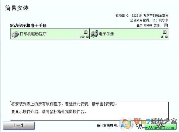 当显示信息简单安裝/自定安裝显示屏时,请单击上一步。