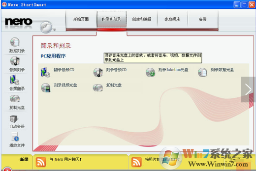 1、启动软件,单击界面中的“翻录和刻录”菜单,出现下面界面