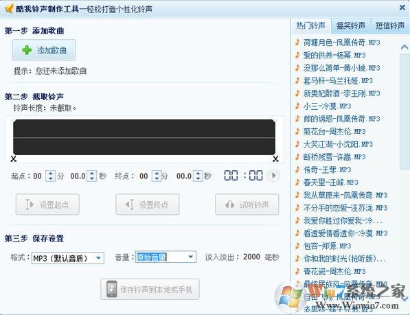 需要制作手机铃声的话可以试试wiwnin7介绍的这款酷我铃声制作工具!
