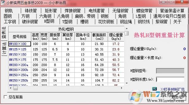 3、根据用户要求,提升了H槽钢的半自动测算功能,并通过探讨H槽钢的基础理论重量计算公式,确认了T槽钢的基础理论重量计算公式,并提升了T槽钢的查表测算和半自动测算功能;
