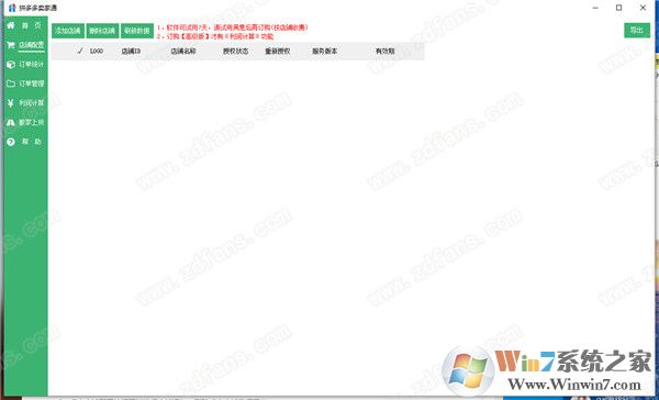 4、点击店铺配置按钮可以进行店铺添加、删除或者店铺数据导出;