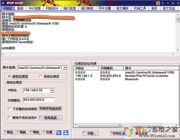 *本软件可以自动搜索系统中存在网卡,在邦定前请选择正确的网卡。