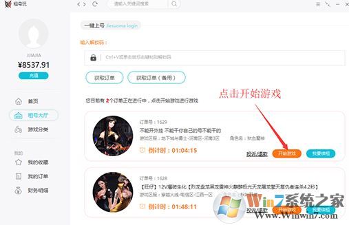 选择一鍵上号--键入解锁码,点击获得定单--点击进入游戏