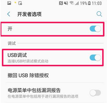 4.进入【开发者选项】,打开【打开开发者选项】和【USB调节】