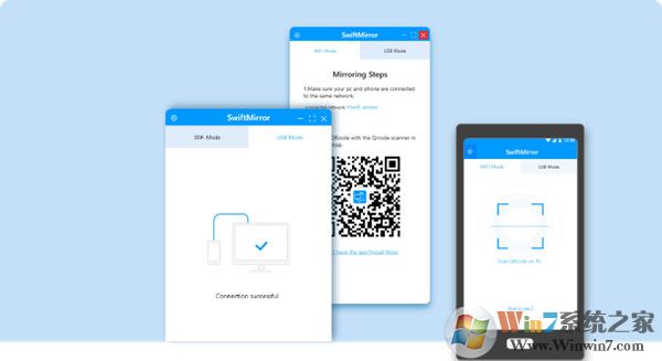 2、保证无线网络网络相接的情况下,用户就可以通过扫描仪手机客户端上的二维码图片连接投射屏幕。想要保证数据信号稳定的话,还可以试着依靠USB线进行连接投射屏幕。