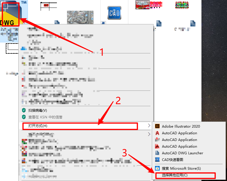 2、打开图纸:图纸图标上,鼠标右键,点击打开方式,点击选择其他应用。
