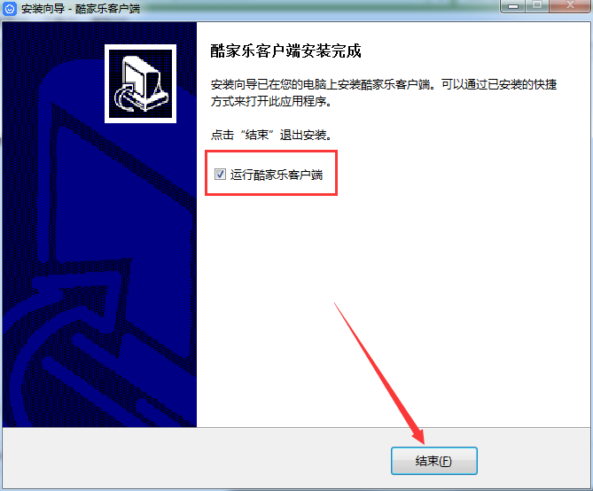 5、酷家乐室内装修软件安装完成,如果大家需要直接运行改程序,则勾选下图中的复选框,之后点击“结束”完成安装向导