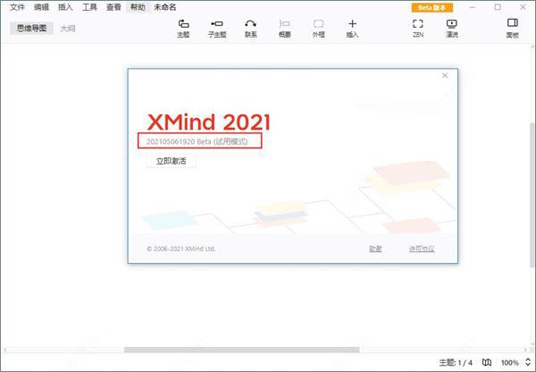 4、但是这时xmind2021思维导图只是试用未激活的;
