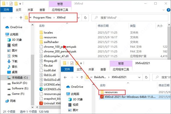 1、下载并进行解压后即可获得xmind思维导图2021中文原程序和破解补丁;