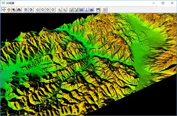 下载的高程数据可以直接在GlobalMapper中生成三维地形地貌,效果如下图所示