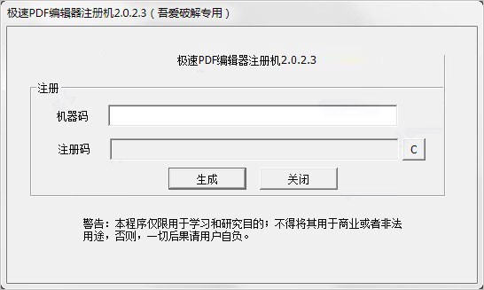 5、主程序安装完成后不要运行程序,直接打开直接压缩包中的极速pdf编辑器2.0.2.3注册机.exe文件,如下图所示: