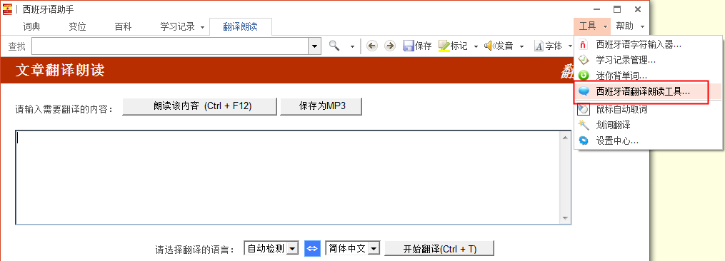 - 西语整句翻译发音功能,且支持语音输入查询;