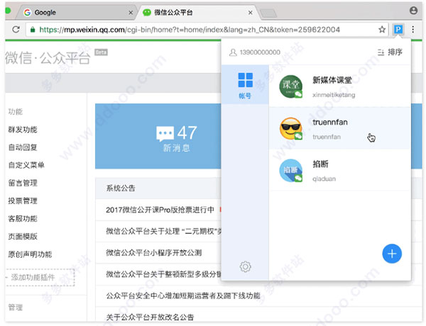 当您运营多个微信公众号时,一天内只需扫码验证微信公众号后台一次,便可直接进入微信公众号后台。