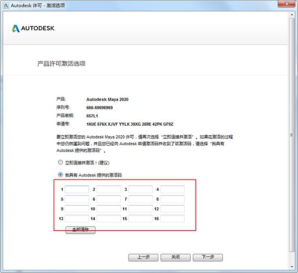 9、此时我们先关闭MAYA再重新打开maya2020.4,需要用的是激活码方式来激活;