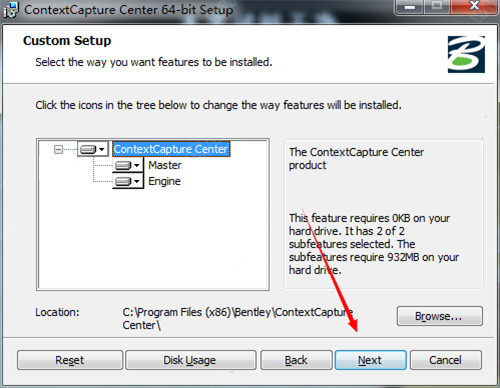2、选择安装路径,一定要将路径更改为C:\ProgramFiles(x86)\Bentley\ContextCaptureCenter,不然后续无法破解