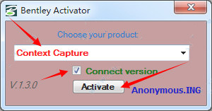 5、运行注册机,选择ContextCapture,并将框打上勾,点击activate