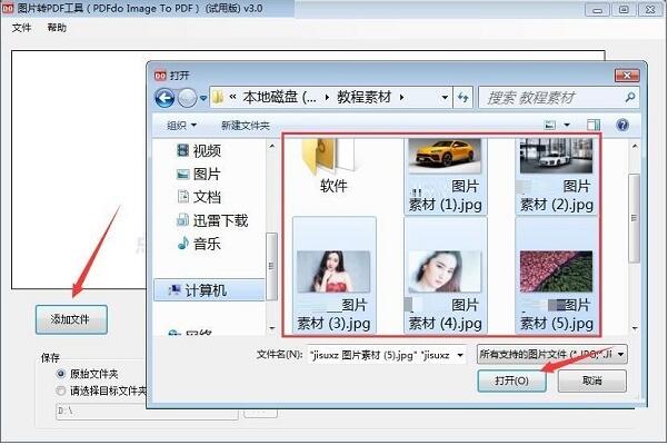 3、点击添加文件,选择要转换的图片文件(JPG/PNG/BMP),点击打开。