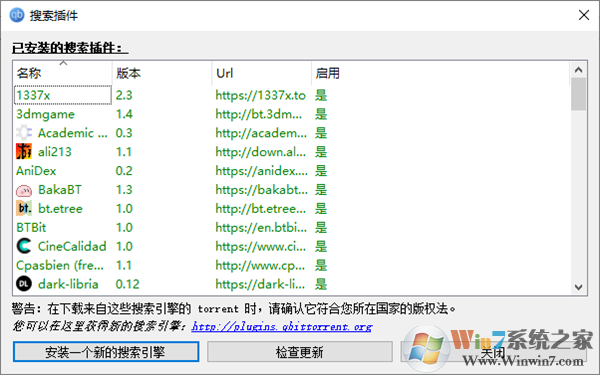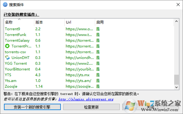 4、发现安装好了数十个搜索引擎插件。若没有发现搜索插件,可能是您的电脑系统或网络不支持运行搜索引擎插件,不能使用搜索引擎没关系,用其它搜索工具就是了,单纯使用软件的下载功能也很不错。