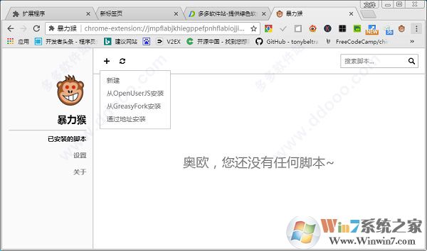 3、当然也可以在已安装的脚本中,安装新脚本或者通过新建,自己编写脚本