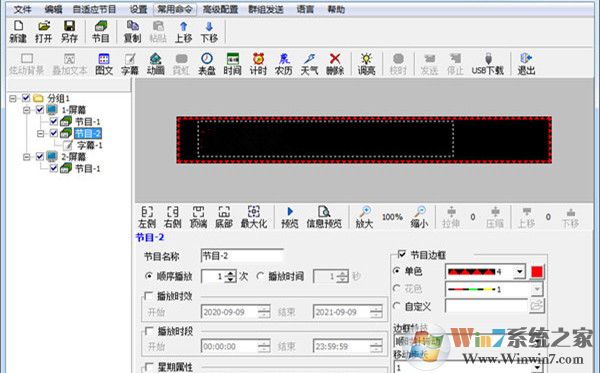 4、提供多个直观的功能面板:节目、图文、字幕、素材、酷字、时间、刪除、调亮、校时、发送、USB下载。