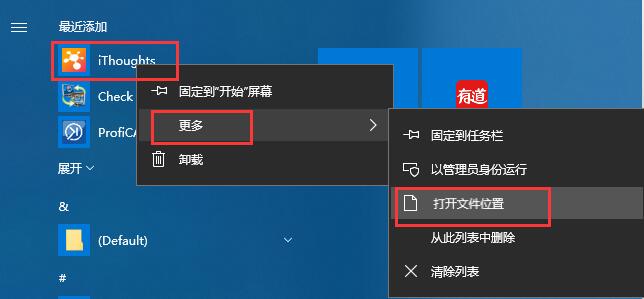 2、软件完成后,在“开始”栏找到软件快捷图标,并且右键点击快捷图标,选择更多---打开文件位置