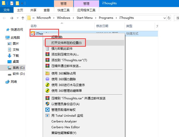 注:在安装免费补丁前,必须先获得软件安装目录,下面两步都是获得软件安装目录的方法,如果闲麻烦,也可以直接按照此位置找到软件安装目录,(软件安装目录为:C:\Program Files (x86)\toketaWare\iThoughts)