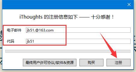 7、再将电子邮件:jb51.@163.com;代码:jb51 输入。最后点击注册
