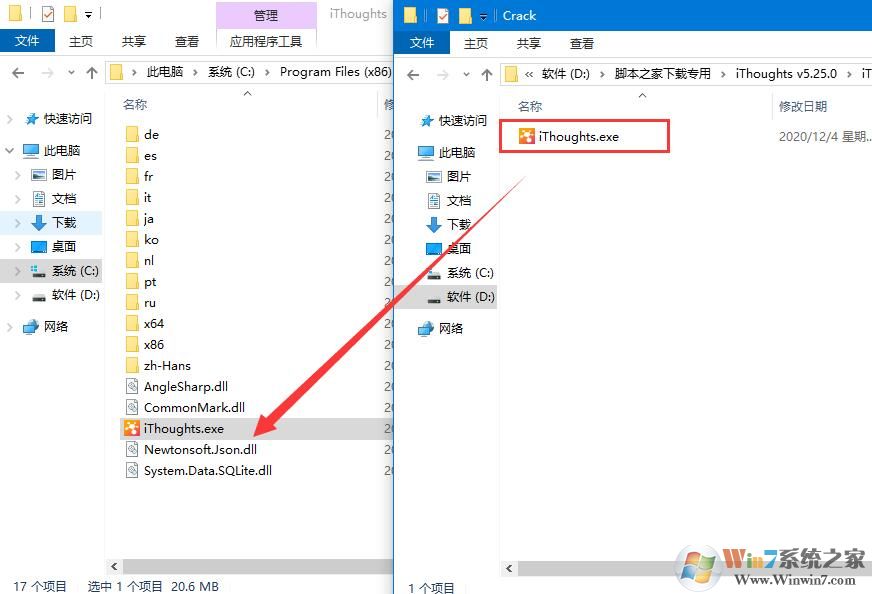 4、然后将crack文件夹中的文件复制粘贴到软件安装目录,(注意!软件安装目录为:C:\Program Files (x86)\toketaWare\iThoughts)