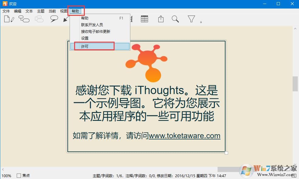 6、然后点击“帮助---许可”