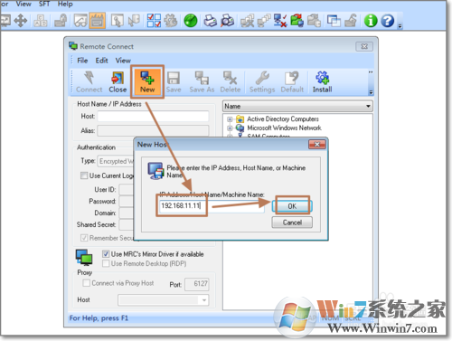 1、打开软件点击new来添加需要控制的新主机,如:局域网主机192.168.11.11管理员账号administrator密码固定