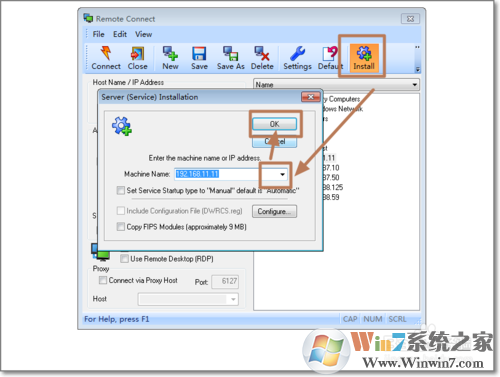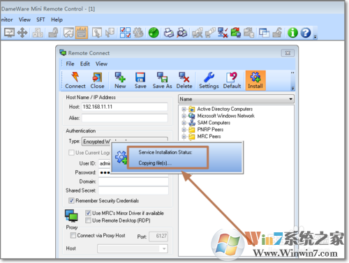 3、点击“OK”后,会显示正在安装服务。被安装电脑若禁止了默认共享则会安装失败。