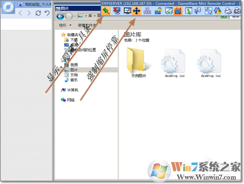 5、连接到被控制端后,软件顶部会出现工具条,功能键是也图形很形象的展现,若不明白可以使用鼠标移动到图标上面,会显示此图标的功能说明。