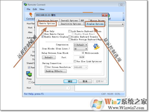 7、如远程控制选项,可以设置远程连接使用的端口号,显示选项可以设置远程控制电脑的桌面显示等。对于局域网,网速优质,不用多做其它设置即可。