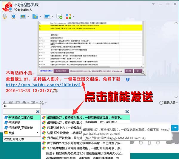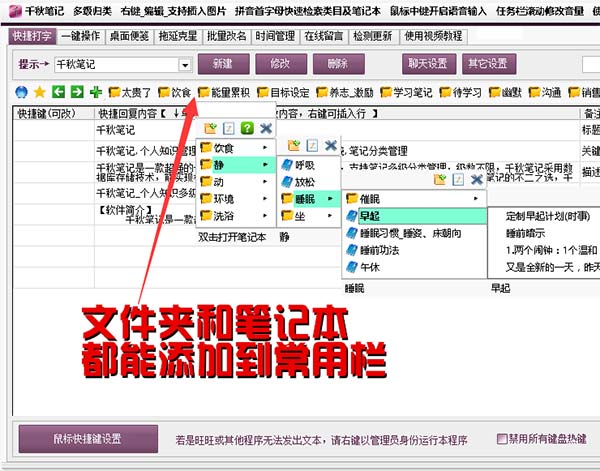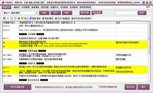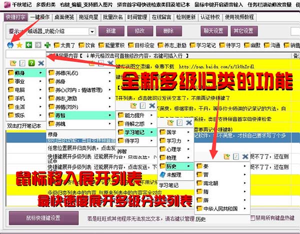 4、极速的笔记提取,实现任意位置输入您的笔记,客服人员不可多得的话术管理及喊话神器哟,旺旺 QQ等,都能一键发出文本和图片,编程人员用来输入代码段,能提高n倍开发效率(偶就是个程序员,此处现身说法),还有其他需要经常录入重复文本的职业,也是不可多得的神器。