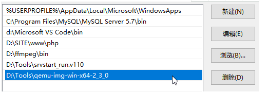 在Windows系统中,为了使用方便,可以将qemu-img.exe所在的目录添加到环境变量。