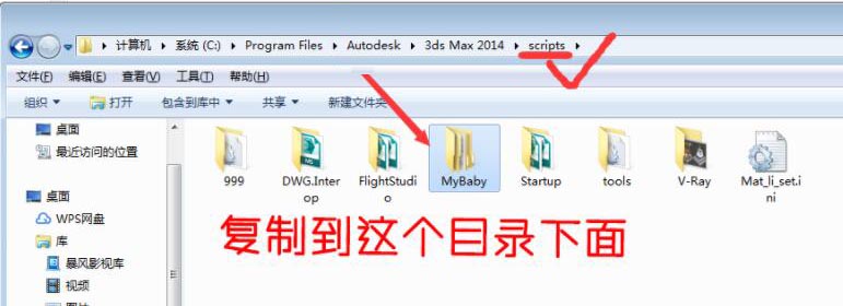 3、将下载的插件神器中的"MyBaby"整个文件夹复制到 max安装目录里的Scripts中