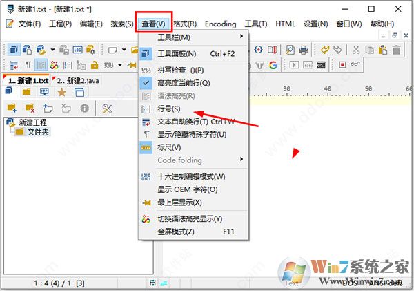 1、点击查看->行号;