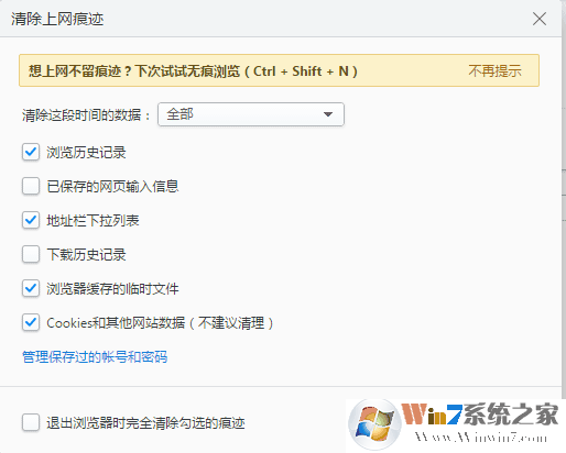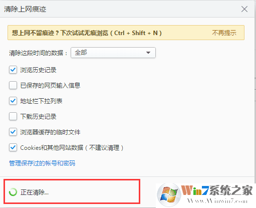 入口一:标签栏居中,菜单栏→工具→清除上网痕迹
