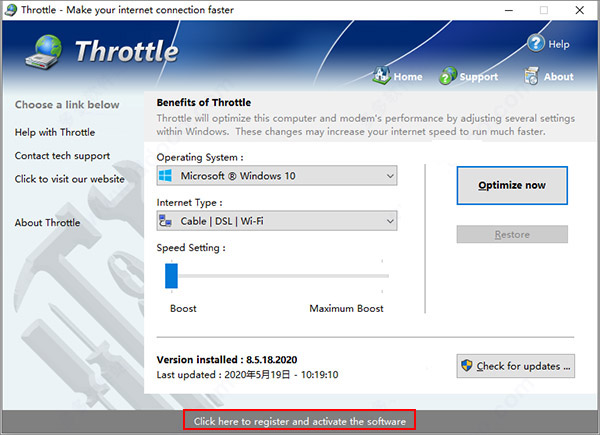使用Throttle对您的计算机和调制解调器进行安全和永久性更改是完全安全且永久性的,运行一次并且您的Internet永久更快。