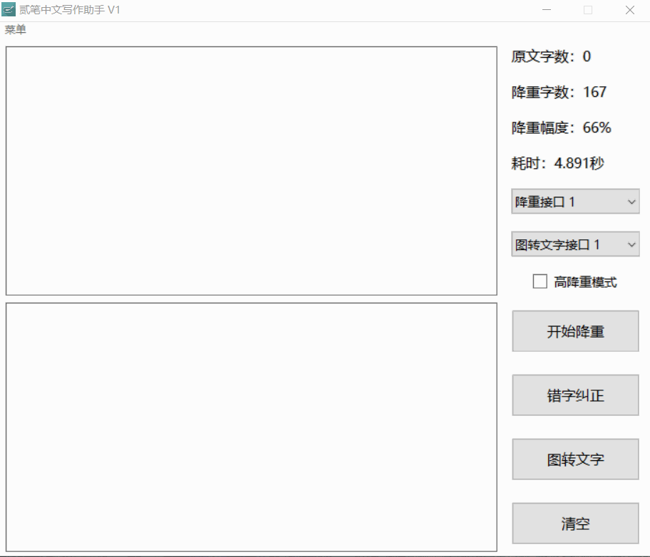 (默认)普通降重模式:降重效果一般,还原度高,错误少